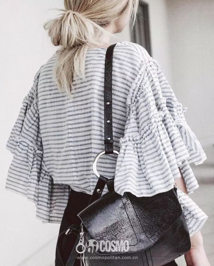 5 a% |& f. o- F! u, q p一直在强调的穿衣细节,这个搭配中的重中之重,却是很多人容易忽略掉的。如果你是个色彩低调派,那么衣服上的细节就可以丰富些张扬些都没关系,比如一件浅色的上衣,袖子的荷叶边细节都能让搭配不显得单调,或者来个背后透视。