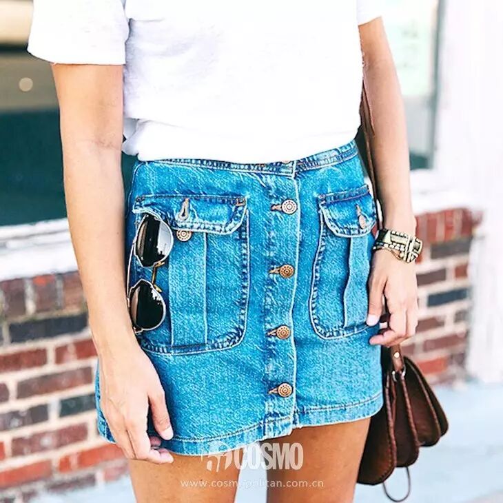 要说好穿还是牛仔裙舒服,而且搭配什么上装单品都不担心出错,尤其是纽扣牛仔半裙,一排考究的扣子让牛仔裙都多了一份随性味道。