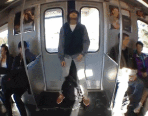 在车门打开的瞬间,这个男子在哄笑声中摔了出去。那一刻他想哭。