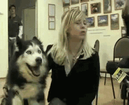 在主人接受采访时,一同出镜的二哈在旁边一改往日的疯癫,紧张地一动不动,