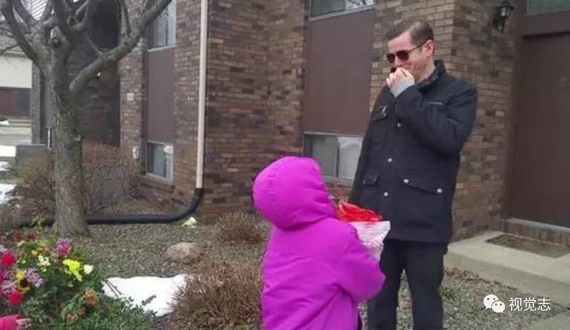 他将伞全部打在孩子头顶,自己浑身湿透全然不顾。) S$ m T: Q) ~; E