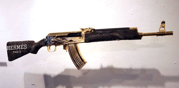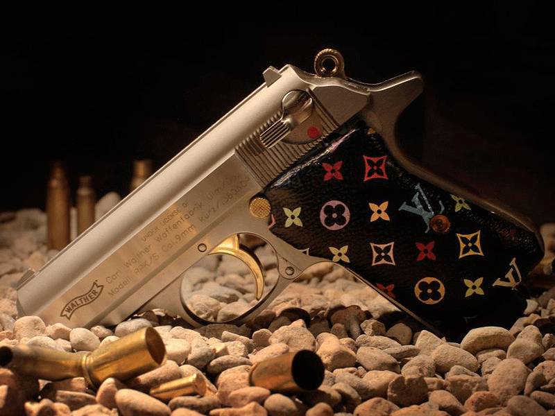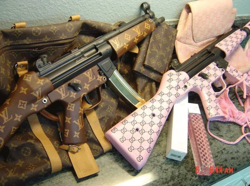( u5 i# S. \9 }6 n2 O+ e i/ w给自己的宝贝枪支印上奢侈品大logo,就是他们对上流社会的一切向往。