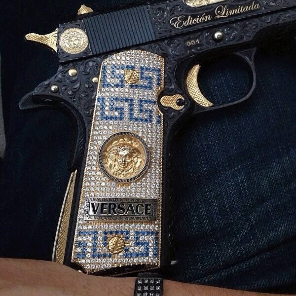在枪上贴一个Versace大logo,可以说是非常respect了。
