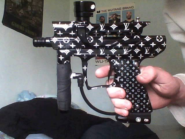 t/ S; a. M0 f4 G! [这本来是个15刀的玩具枪,但一个大学生给它印上LV花纹后,就能卖到500刀。