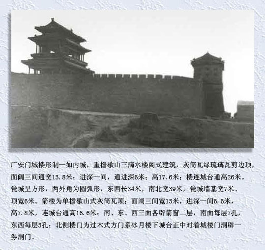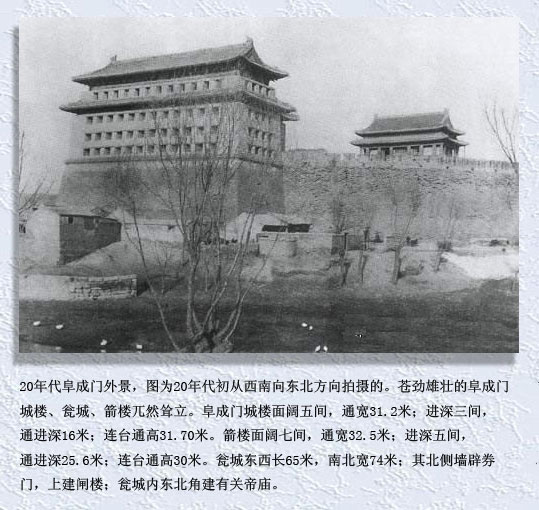 现在除正阳门、德胜门、和后来重建的永定门其余已都不复存在。其中部分城门还留有儿时那衰败城垣的记忆。
