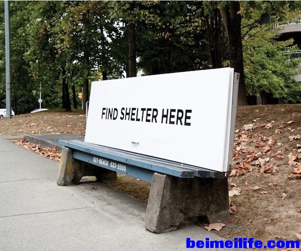 7 I$ E3 P# A+ B) Y/ u! s- q6 ^ 为了防止流浪汉在公共场所过夜,很多城市在地上钉了铁钉。可是在温哥华,这张长椅上却写着:“在这里找住所”。无家可归的流浪汉们翻开长板,就能躲进这个临时避难所。同时可以看到挡板下面的话:find home here——在这儿找到一个家。细节显示生活态度,温哥华,就是这么任性,这么温暖。