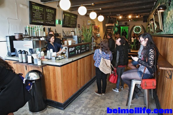 布鲁克林威廉斯堡的抹茶吧供应各种茶饮,从热茶到用电动搅拌棒搅拌发泡的经典冰抹茶,还有富士苹果姜汁抹茶和肉桂麻仁拿铁等招牌茶饮。