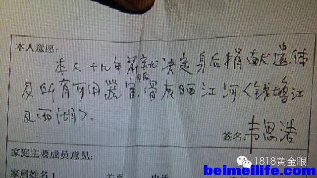 9 A9 Y+ C! x: U/ U v 老人甚至签了遗体捐赠志愿表,身后愿意捐赠遗体和所有的可用器官。