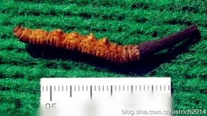 另据称,每年五月中下旬,当冰山上的冬雪开始融化,气候转暖的时候,幼虫破土而出,开始活动,在山上的腐殖质中爬行,待头向上爬至虫体直立时,寄生在虫头顶的菌孢开始生长,菌孢开始长时虫体即死,菌孢把虫体做为养料,生长迅速,虫体一般为四至五厘米,菌孢一天之内即可长至虫体的长度,这时的虫草称为“头草”,质量最好;第二天菌孢长至虫体的两倍左右,称为“二草”质量次之;三天以上的菌孢疯长,采之无用。 ; {4 s q7 M8 g% w3 Q, q