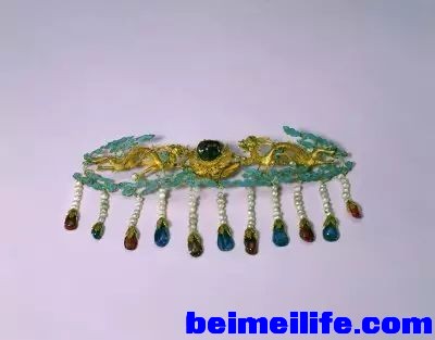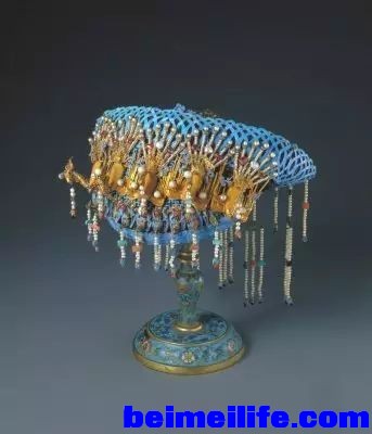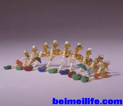+ l6 S" H/ D& P. X; d 后妃们的首饰按习惯分成头饰、颈饰、手饰、佩饰等几大类。这些精美绝伦的饰品,以金银、翠玉、珍珠及各种质地的宝石来制作,精雕细琢,在制作工艺上采用了累丝、镶嵌等手法,再加上清代特有的掐金丝和点翠等工艺,使清代的宫廷女子们显得更加高贵典雅,美丽动人,也体现了匠师们高超的工艺水平。 & r6 K$ K& T: j% v) Q, @0 Y( j& C0 i