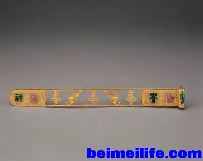 金镂空嵌珠石扁方 * }6 f; y% B% C" w' l