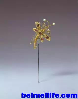 ' _( P0 c/ s: J$ ~# c金镶宝石蜻蜓簪