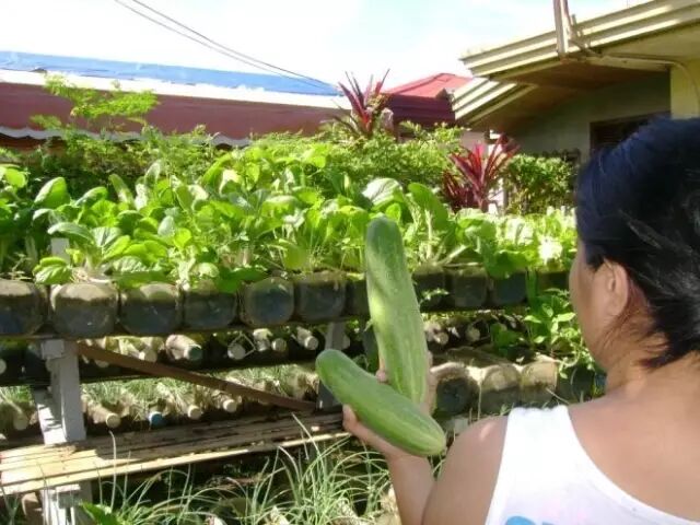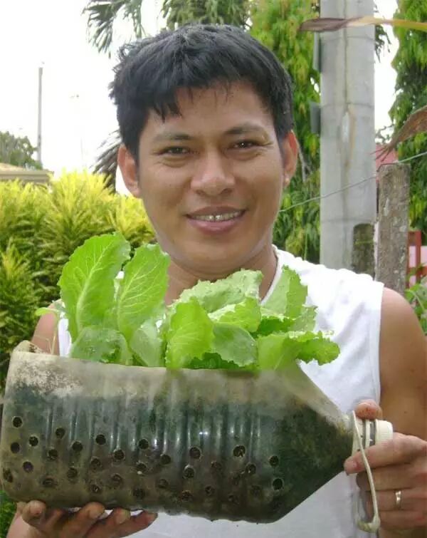 来自菲律宾的JOJO就是用这种方法打造了一个超强大的瓶子菜园,自己种菜自己吃,自己自足,成了红遍网络的种菜达人!