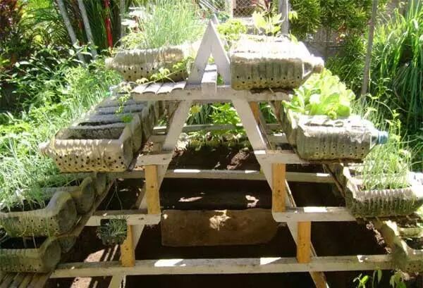 看别人这样好几排塑料瓶种菜种瓜,硕果累累!你也完全可以用些塑料瓶,在自家阳台种出大片菜园,往塑料瓶土壤中插些菜瓜幼苗、韭菜青菜小香葱,定期浇浇水,长成之后满满的都是新鲜蔬菜~绿色又健康!