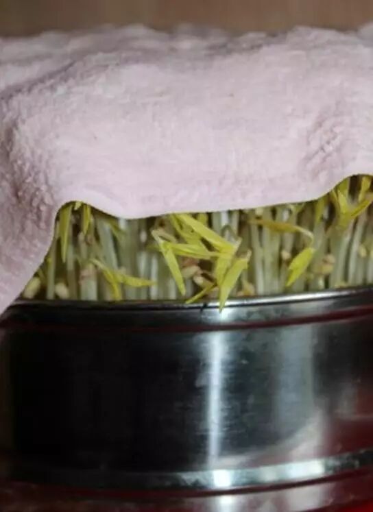 准备一口较平较宽的蒸锅,在锅中放入蒸架(方便浇水渗透)在蒸架上铺一层湿毛巾,然后将豆子均匀洒在毛巾上。