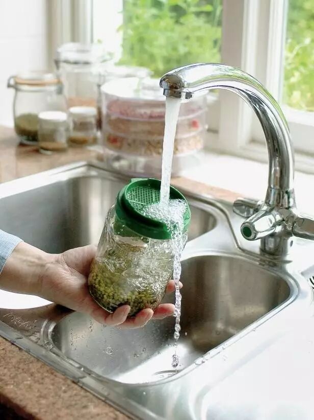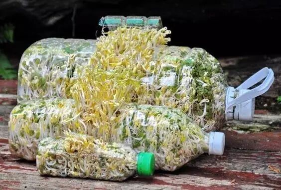 如果你喜欢吃豆芽菜,用个塑料瓶让它长满瓶!在瓶子里倒1/3左右的豆子,再倒满水,把瓶子放在阳光直射的地方,浸泡24小时,直到豆皮破开为止。