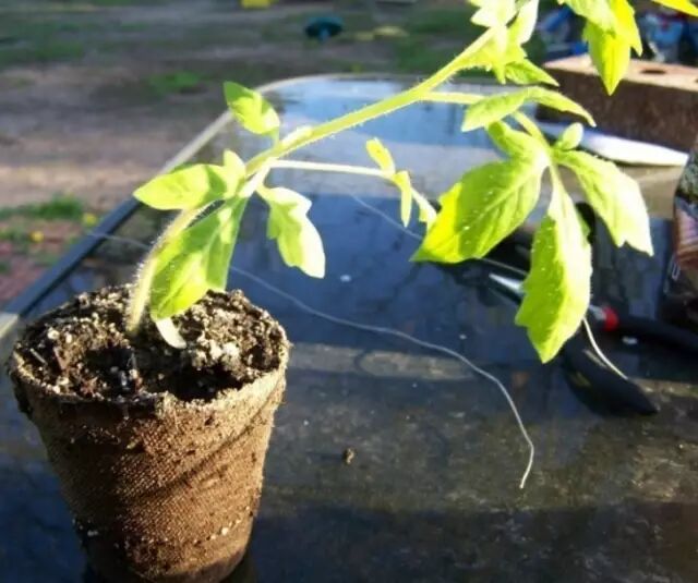 然后把番茄苗和土壤一起倒过来,菜苗从瓶口伸出去,然后,挂起来~!