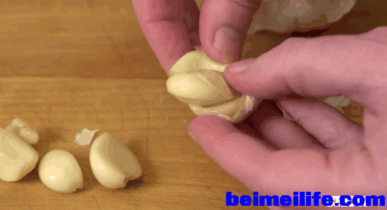 对半切开,掰松果皮,倒扣过来用木勺用力敲敲敲。