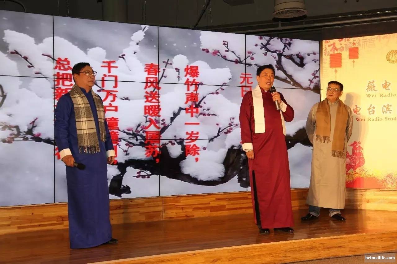 12月17号,薇电台2016新年诗会在滨海新区薇电台滨海演播中心举行。来自天津及全国各地的薇伙伴,朗诵爱好者,以及社会各界精英参数百人参加了诗会。薇电台朗诵艺术团的各位朗诵艺术家、播音员、主持人与来自滨海新区的朗诵爱好者同台朗诵,现场气氛热烈,掌声不断。 ! E# S1 W/ t; n, T