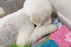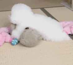 一位网友家狗狗Ernie就是如此,Ernie是只比熊犬,平时最喜欢和它的玩具在一起,不过,你自己就像个玩具你造嘛?* a0 ?# j5 g7 c: ?" X