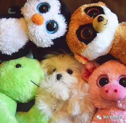 如果你也有这样一只狗狗,一定要给它买很多毛绒玩具放在一起!那画面一定可爱到爆棚!艾玛!我的少女心啊!