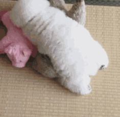 . S; K. x& p" u主人说,Ernie无论有多累,都要走到自己心爱的玩具旁边睡觉。。。趴着的小背影简直萌坏了!