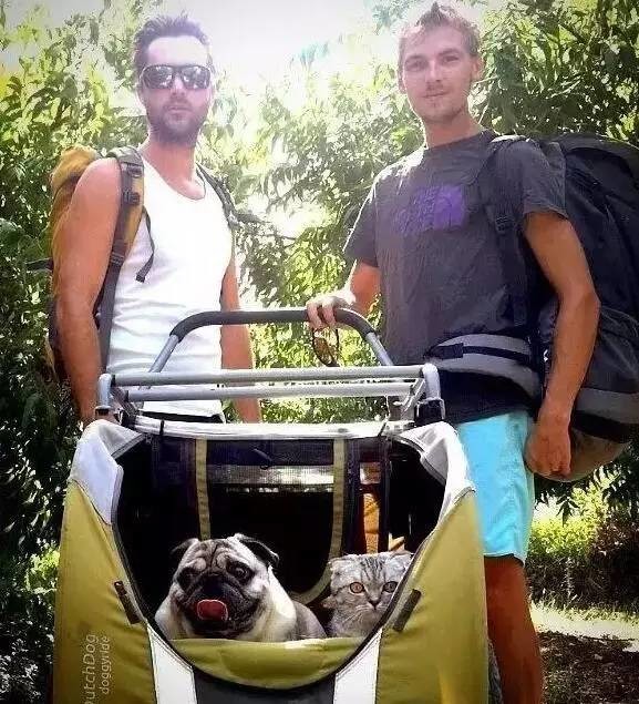 不过人家婴儿车里推的并不是婴儿,而是一只巴哥犬和一只折耳猫~