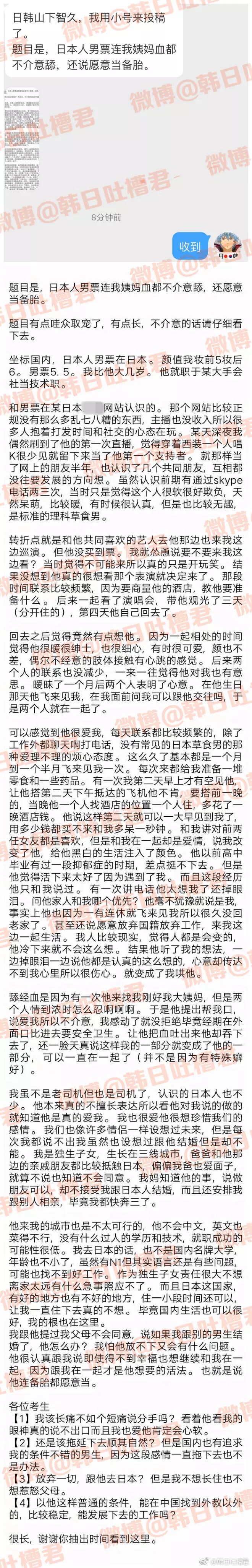 米非冷眼看世界:根本就不是问题,他来中国当外教,你去日本当主妇,都不会饿死。说到底,也没那么爱而已,舔血不代表什么,很多日本男人都不介意的。