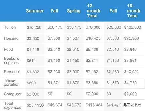 从以上六大类中可以看到,要想控制留美费用,首先要清楚申请项目的时长和学费,其次要了解地理位置,以确定大概的住宿、交通、个人消费等支出。