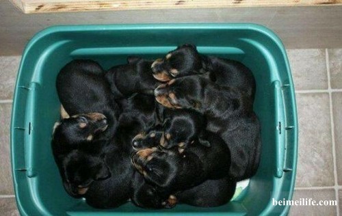 这12只小宝贝喜欢都窝在一起,一起吃东西,一起玩耍,这让主人看了非常开心,它们给自己带来了无数的欢乐。也确实辛苦了怀孕的杜宾犬挺着那麽大的肚子。