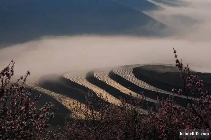 沿着山的海拔,梯田的曲线,破土不久的庄稼……这些蜿蜒在高处的杏花,将自己有序、无序地散落于苍茫深处。仰望,眼前是天空落下的一张粉红的帷幔,徐徐地下沉,不由自主的想象,将你带入时间无法过滤的梦境。站着,与一棵树对望。干净的花朵,安静的绿芽,淡淡的馨香……使你习惯了尘世与喧嚣的身体暂时有些无所适从。躺下,此时阳光正好,贴着草山,肉体被泥土芬芳。一缕细微的风划过树梢,花瓣飘落,飘在你的脸上,身上,或者手掌的纹路间。睁开眼,期间的一朵正好落于你的眼睑,但你绝不会感叹于花谢花飞飞满天的怅惘里。其实,飘落未尝不是一种美丽和辉煌。' x0 e9 ?3 m1 q, I3 O$ a, V