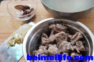 8 P; V. @* W! |3 A先说说红烧排骨的做法~排骨斩块之后用水冲一会,冲去血水。-