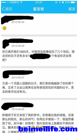 近日,论坛中一位网友的发帖引来了无数人泪崩感动。帖子中写到该网友无意中点进了已故5年多的高中同学的QQ空间,却发现自2010年同学不幸离世至今5年多的时间里,同学母亲一直坚持不断地在儿子的QQ空间留言板上留言。+ q/ ^3 Z+ D) \2 ?. h