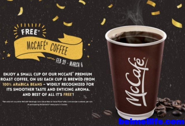 加拿大中文电台报导,加拿大麦当劳于2月29日开始,直至3月6日,请大家免费喝小杯装百分百香浓的阿拉伯(Arabica)咖啡豆现煮咖啡。如果你想要大杯的,只需要付几毛钱差价,随你所愿。2 D x! n; n9 r- c