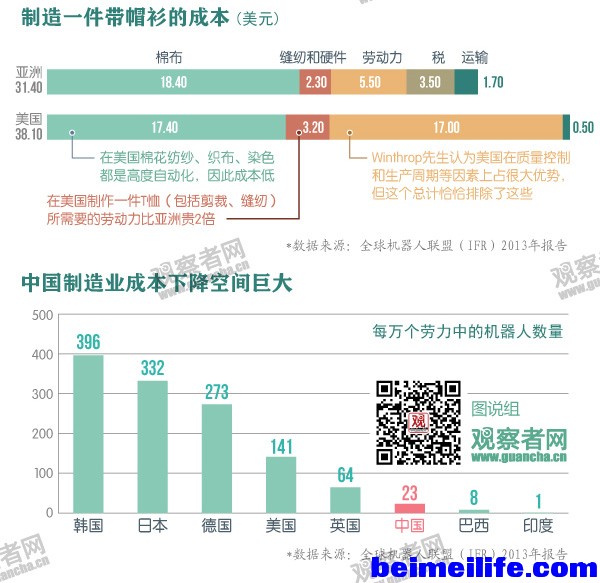 综合以几点来看,随着国内环境成本,人工成本等持续攀升,中国制造成本已经和美国制造成本相当,在一些行业将会超过美国制造成本。“江南化纤”是个案,但国内制造成本的连年大幅攀升是不争的事实。中国制造已经“未强先高”的问题,必须引起高度警觉,想方设法降低制造成本,努力提升“中国制造”的竞争力。 . ^$ Z* G# Q6 \6 P" [4 I% i
