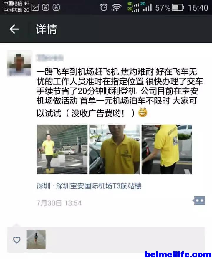 你只要拎着包上飞机就可以了,后台会将你车辆状态、停车位置、油表读数等发到你的手机,回程时一个电话,出了候机楼你的爱车就会由司机开到你的眼前。互联网改变生活!