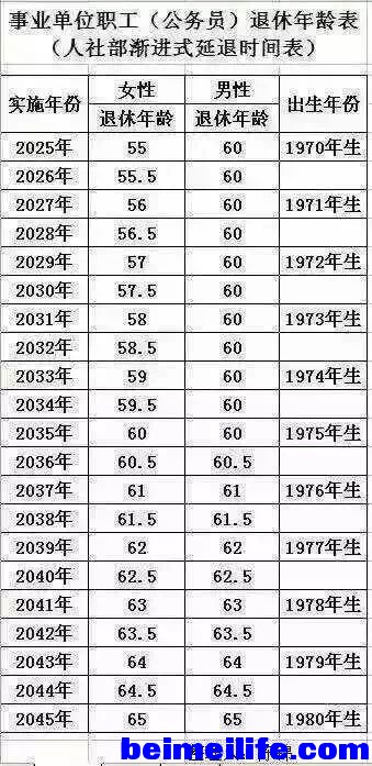 国内即将实施的退休年龄渐进表