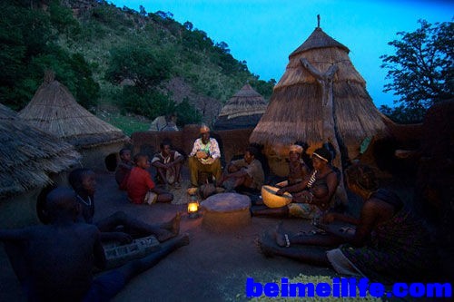 0 R, ~: f* K7 ?( Q; H* x' sBatammariba family enjoying story by the fireside- e7 ?9 U8 N# c* b. r) w- v9 j1 _1 ^