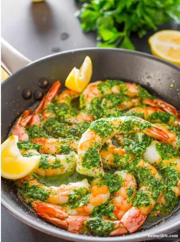 食材半斤虾(去内脏,去壳),1个柠檬(榨汁),黄油,3瓣大蒜,香菜,盐和胡椒。