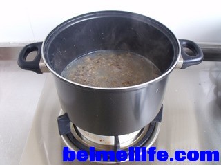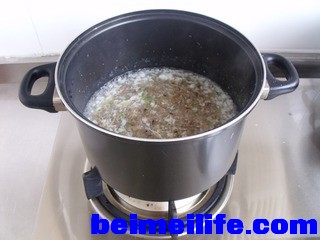 1 s* A/ V3 }$ H/ ~+ _锅里冷水放入牛肉,香菇,姜末。-