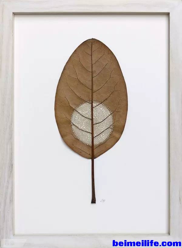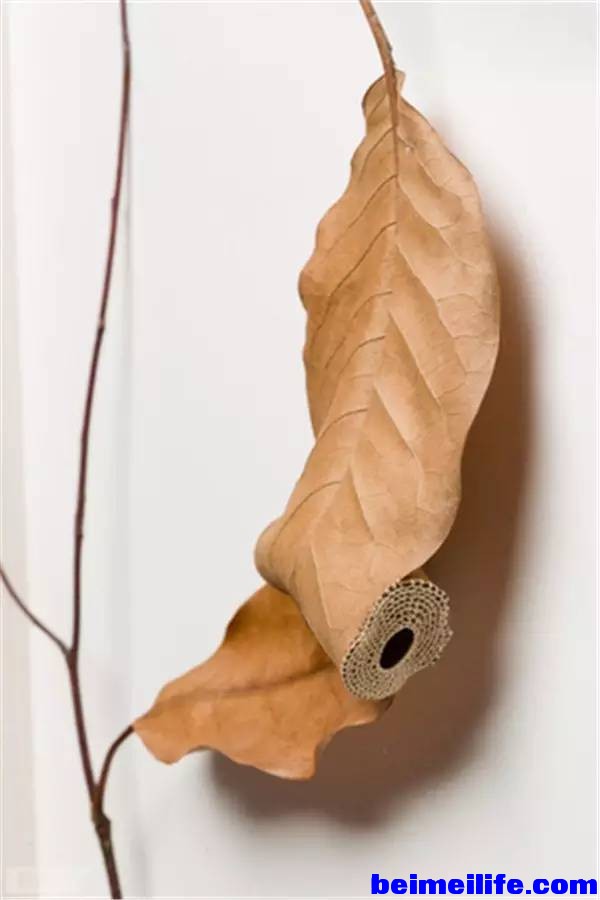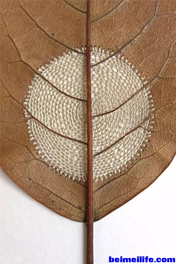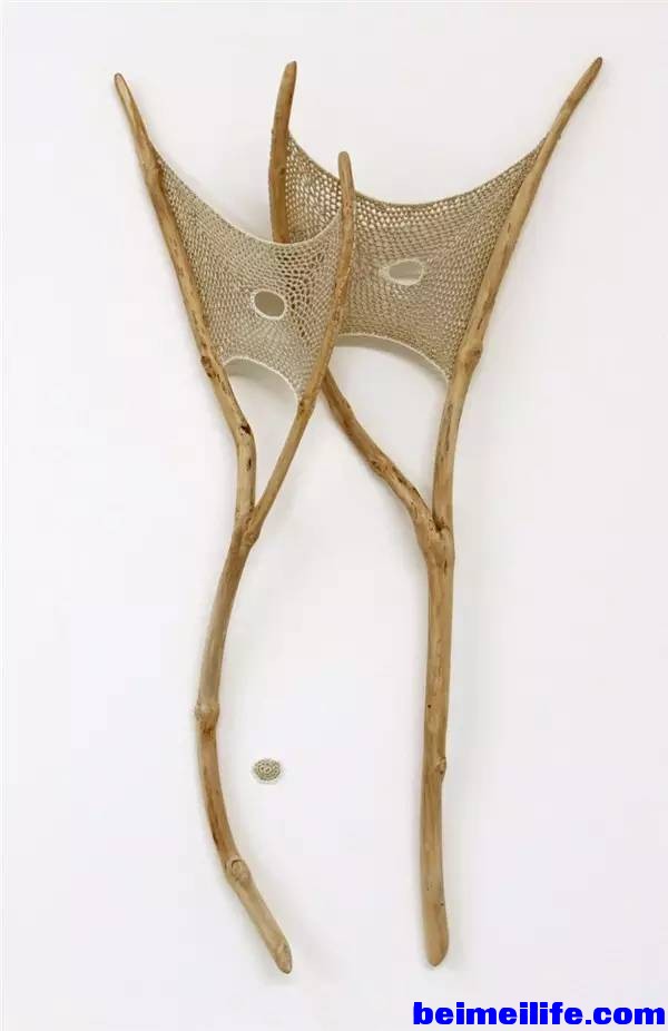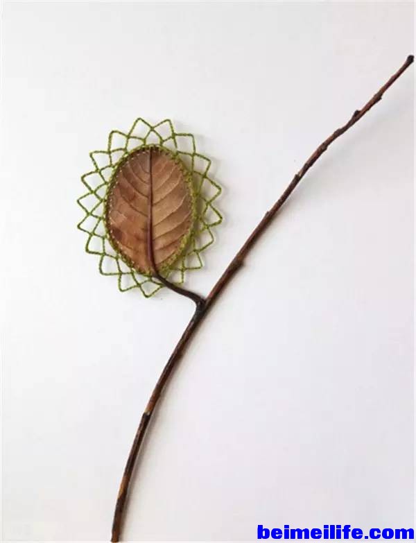 - \6 R C9 n& K A! oBauer从小时候就开始学习编织,由此她结合了编织与捡拾来的自然细节,像是树叶、树枝和石头,细心地用针线织成一件件迷你艺术品,让人感叹自然与巧妙手工艺结合的美好。 + J; f+ s8 f* c4 a