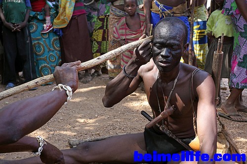 0 c; f5 }( j& I/ T* E mSomba Warriors fighting with tribal weapons,Benin.