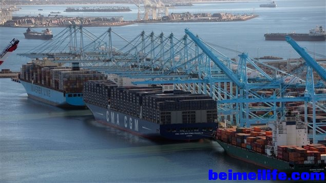 世界最大集装箱船 Benjamin Franklin 号首次停靠北美,贸易领域的专家说,这象征着跨洋海运进入了一个新时代。