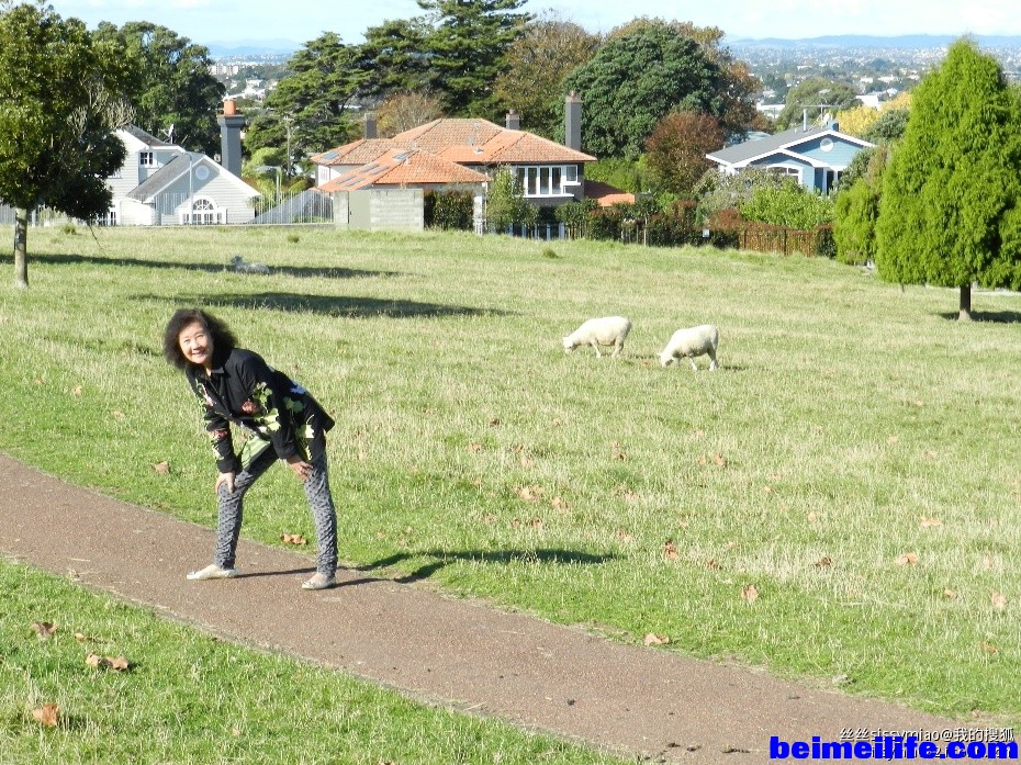 0 S8 ?% G+ W, `! a+ v:一树山(OneTree Hill).说是公园,也可以说是一个牧场。里面有大片的草地被截开,一群群的牛和羊在吃草。时不时的还能听到它们在低声呼唤,发出欢乐得低吟。