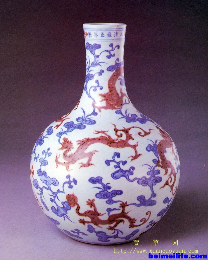 将元明清御厂常用五种龙纹造型列表对比总结,可知螭、夔龙皆无鳞、各有兽足造型,这很可能与传说中的二者皆为兽有关。根据螭、夔、应龙三者各自异同点,可以简单归结:四足、无鳞、无翼者为螭龙;双足、无鳞、有翼者为夔龙;足可有可无、可二可四,有鳞有翼者为应龙。秃尾龙除尾巴光秃外,其它特征与角龙无异。 从三朝龙纹造型使用看,明朝宣德年间同时出现螭龙、应龙、夔龙三种新颖造型,说明当时御厂制瓷创新、变革力度之大。虽然后朝御厂制瓷业几度繁荣,但造型主要以宣朝为基础,继承并延续发展。所以,宣朝制瓷在明清御厂发展过程中承前启后,并为后代奠定了基础,具有划时代意义。另外,多种不同龙纹造型的先后出现,也反映出御厂纹饰设计在吸取、继承中国传统文化时,还在不断演变、创新。 ' y$ o. N8 Q4 d4 G0 F7 {