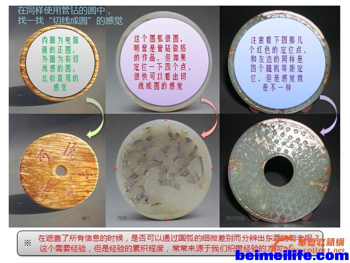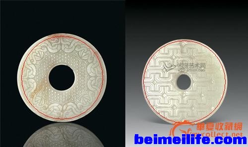 太不圆的例子,我们可以回忆一下我们经常能够看到的汉谷纹壁仿品,璧的起墙部分,是不是经常看见断断续续的线构成的圆呢?对了,那里就是模仿切线成圆的地方,但这个模仿过了劲,就很丑陋也很露馅了~~~~~