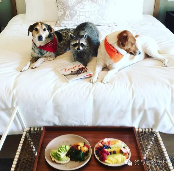 这只小浣熊为什么会和两只狗狗生活在一起呢?这还要从两年前说起。 " N9 D8 [1 b$ o/ P3 }( }