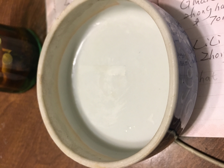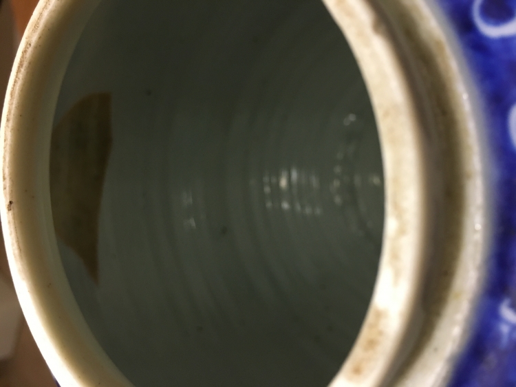 4 q- }2 [, J) ~: J6 a( X0 r4 A# U2:青花从上述图片主观判定:非天然釉料, 无机釉料的研磨细化会使之飘浮于玻璃釉面, 从而产生与老物件天然釉面非常显著的差别。天然釉料必然有晕散,即使是单勾素描。