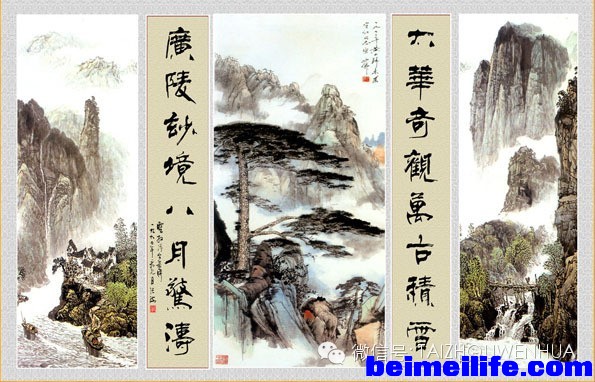 ) w! G$ P9 `! i1 W) l5 `8 Q ?9 G3 |书画的格式 中堂:不能单独悬挂,必定配有对联,多悬於正厅中央,所以称为中堂,在裱褙上它在下垂两边要加轴头。 条幅: 又称条山,长条,直幅等,可以单独悬挂,在裱褙时下垂两边是平齐,不加轴头。比中堂小,窄,一般是使用四尺整张直叠对开。 碑刻: 碑刻多为直式,如条幅写法差不多。 楹联: 是刻在木柱上,古代房屋两旁门柱上多有对联,今之庙宇中最常见。作法,写法皆相同,只是质料与位置不同而称楹联。 对联: 是写好裱为两幅,分上,下联,详分可分为一般应酬对联 ( 喜庆,挽联 ) ,春联等。 横披: 又称横幅。宋人米芾,又称门楣,是因多悬於门上之空位。近代因不便於悬挂,皆改装成镜片式,可以防潮。 匾额: 又称匾头。多刻在木板上,悬挂在门之正面,但亦可挂在墙上。 独屏: 可单独成一系统,亦可单独悬挂断 ( 成立轴 ) 但内容上有先後次序,如写四季春,夏,秋,冬,则应按次序悬挂之有写四体亦可不按固定次序悬挂。 通屏: 是不可分开悬挂,因第一幅到最後一幅是相联贯的,因之多称通景,皆相通,必须依顺序一幅接一幅的挂起,才算完整的一幅。 团扇: 其种类很多,有圆形,椭圆形,长方圆角形及葫芦形等。 摺扇: 因便於收藏,携带方便,为文人雅士所喜爱,尤其面上可书可画,为酬答最好工具,为古人留下不朽作品。 长卷: 又称手卷,书画长幅,可以卷起,以便收藏或携带者。 册页:因卷轴或长卷阅读不便。在唐时有人将长卷切割装成单幅叶子,再将连接成册页,多为台萱四开以下,以八至十六开为多。