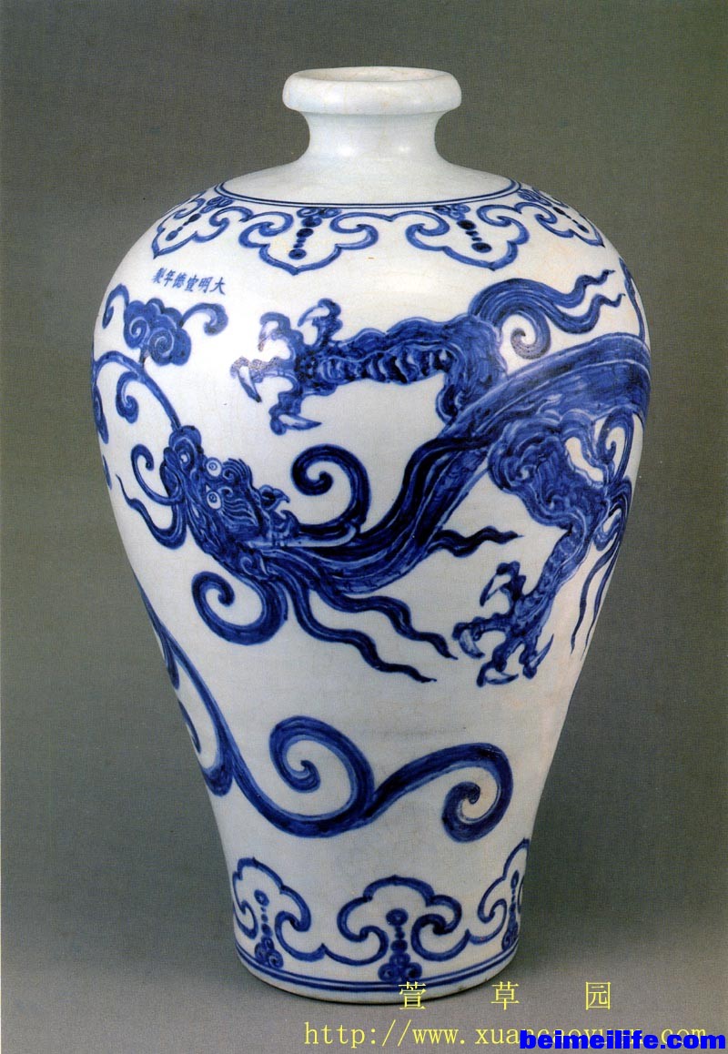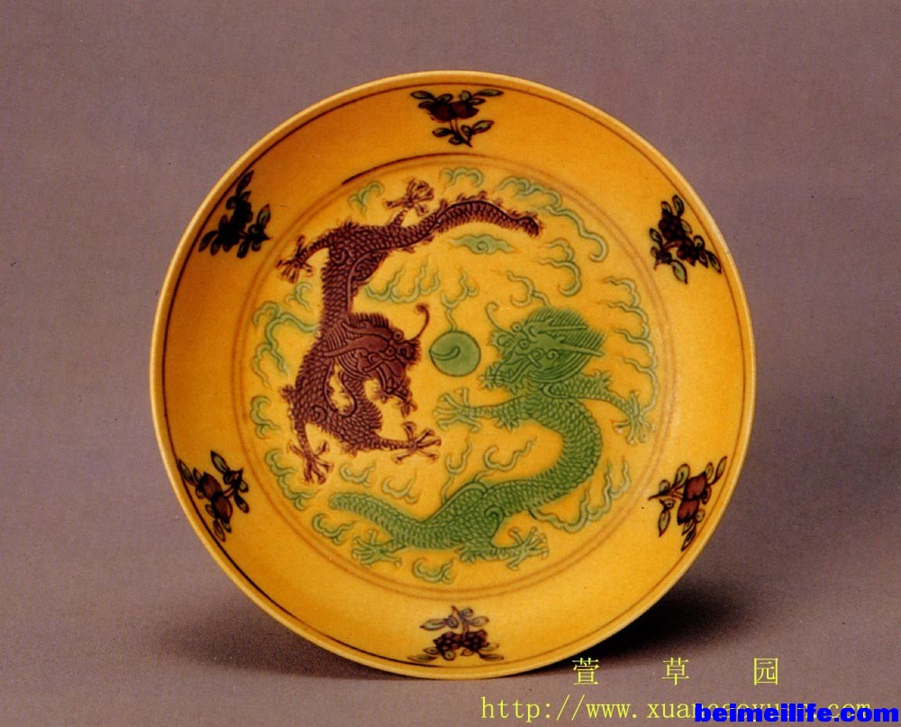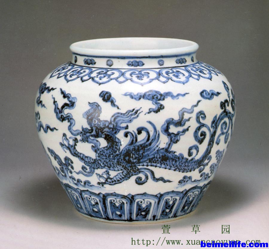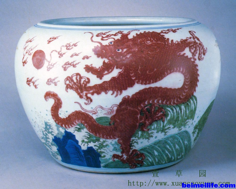 将元明清御厂常用五种龙纹造型列表对比总结,可知螭、夔龙皆无鳞、各有兽足造型,这很可能与传说中的二者皆为兽有关。根据螭、夔、应龙三者各自异同点,可以简单归结:四足、无鳞、无翼者为螭龙;双足、无鳞、有翼者为夔龙;足可有可无、可二可四,有鳞有翼者为应龙。秃尾龙除尾巴光秃外,其它特征与角龙无异。 从三朝龙纹造型使用看,明朝宣德年间同时出现螭龙、应龙、夔龙三种新颖造型,说明当时御厂制瓷创新、变革力度之大。虽然后朝御厂制瓷业几度繁荣,但造型主要以宣朝为基础,继承并延续发展。所以,宣朝制瓷在明清御厂发展过程中承前启后,并为后代奠定了基础,具有划时代意义。另外,多种不同龙纹造型的先后出现,也反映出御厂纹饰设计在吸取、继承中国传统文化时,还在不断演变、创新。